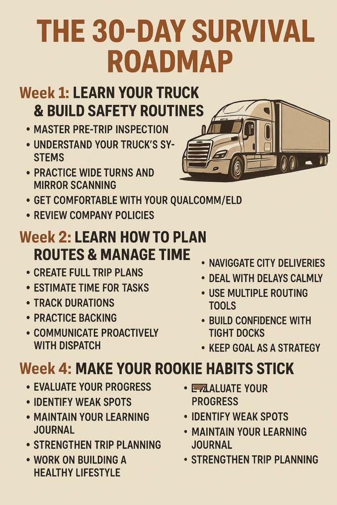 The first month is not about achieving perfection, it is solely about instilling the good habits that become your trademark throughout your CDL career. The right driving tips and mindset help you survive this period and build solid career expectations.