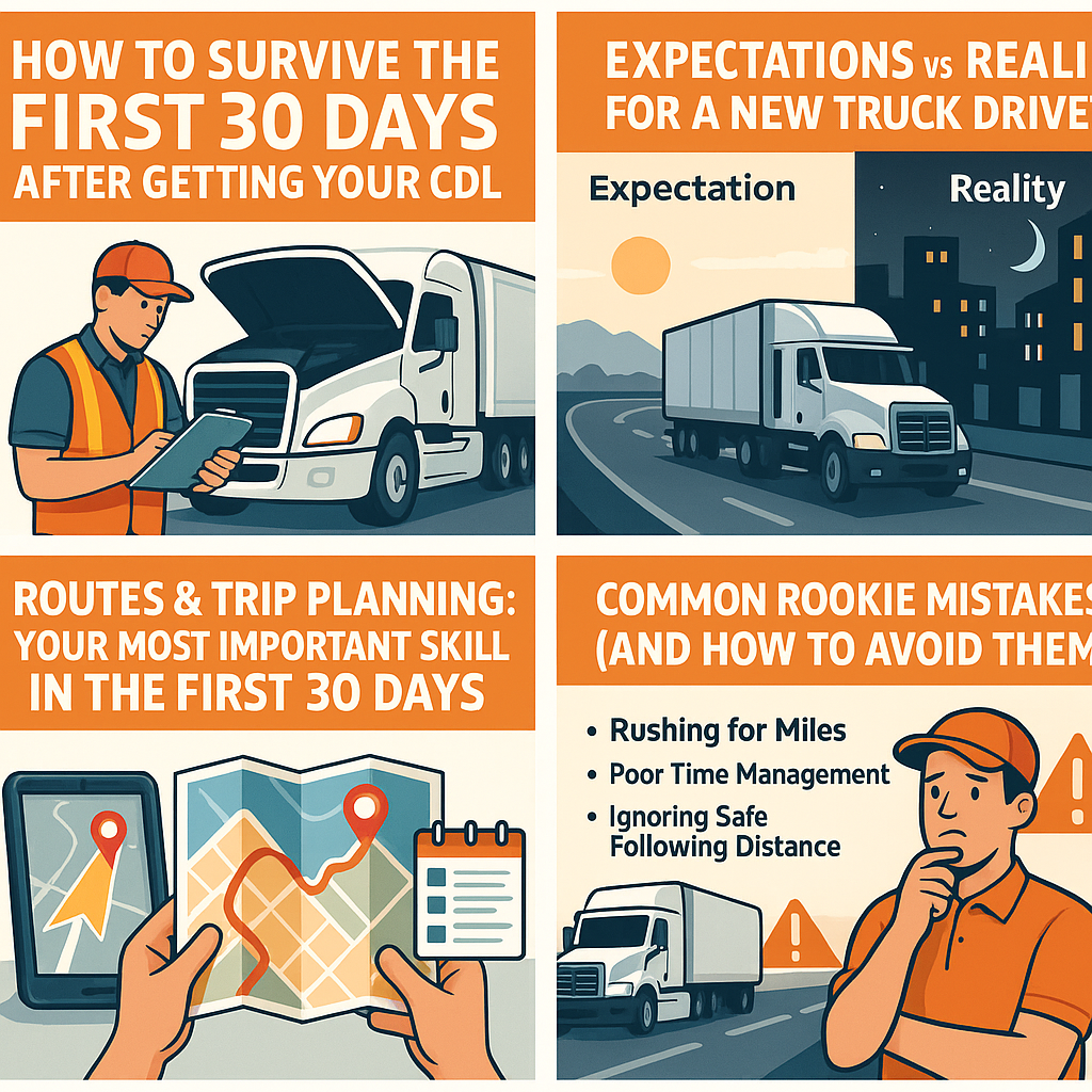 Gaining your CDL is one big thing that can never lose its worth. But with the first 30 days on the road, you are actually on board for the real truck driver career. Everything you learned in truck driving school suddenly becomes real, such as running on tight schedules, unpredictable delays, parking issues, and driving through different weather conditions as well as carrying the responsibility of a commercial vehicle worth over $200,000 in your hands. These early weeks mark the moment every rookie trucker begins translating road training into real practice.