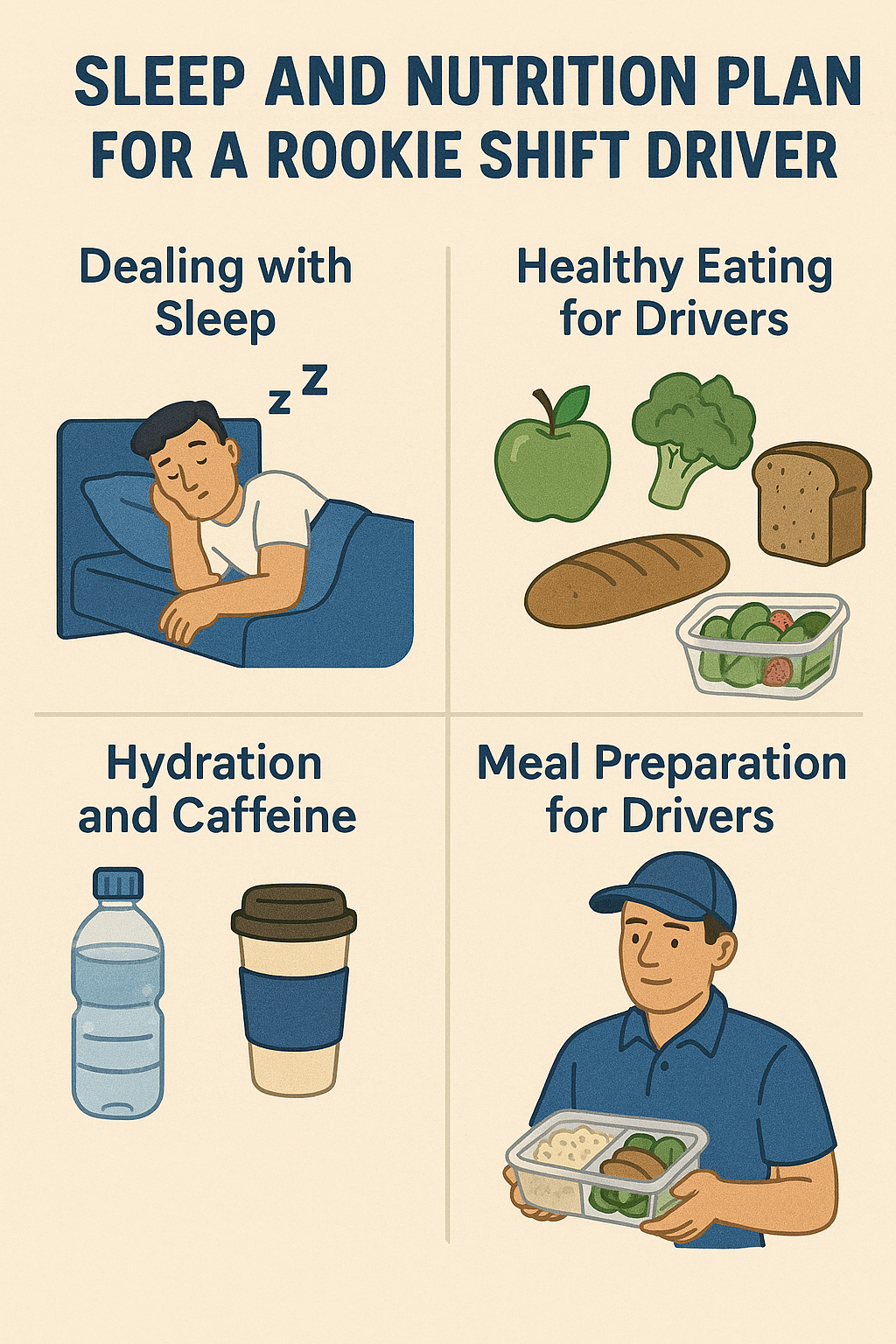 This guide has the aim of helping you to come up with a rookie driver sleep plan and a realistic shift driver nutrition plan that is applicable in real trucking situations, which are not in a perfect world where you are always off at 5 p.m. We will go through dealing with sleep, a healthy eating for drivers guide, hydration and caffeine, meal preparation for drivers, and practical routines that support rookie driver health, driver performance, and safe driving habits.